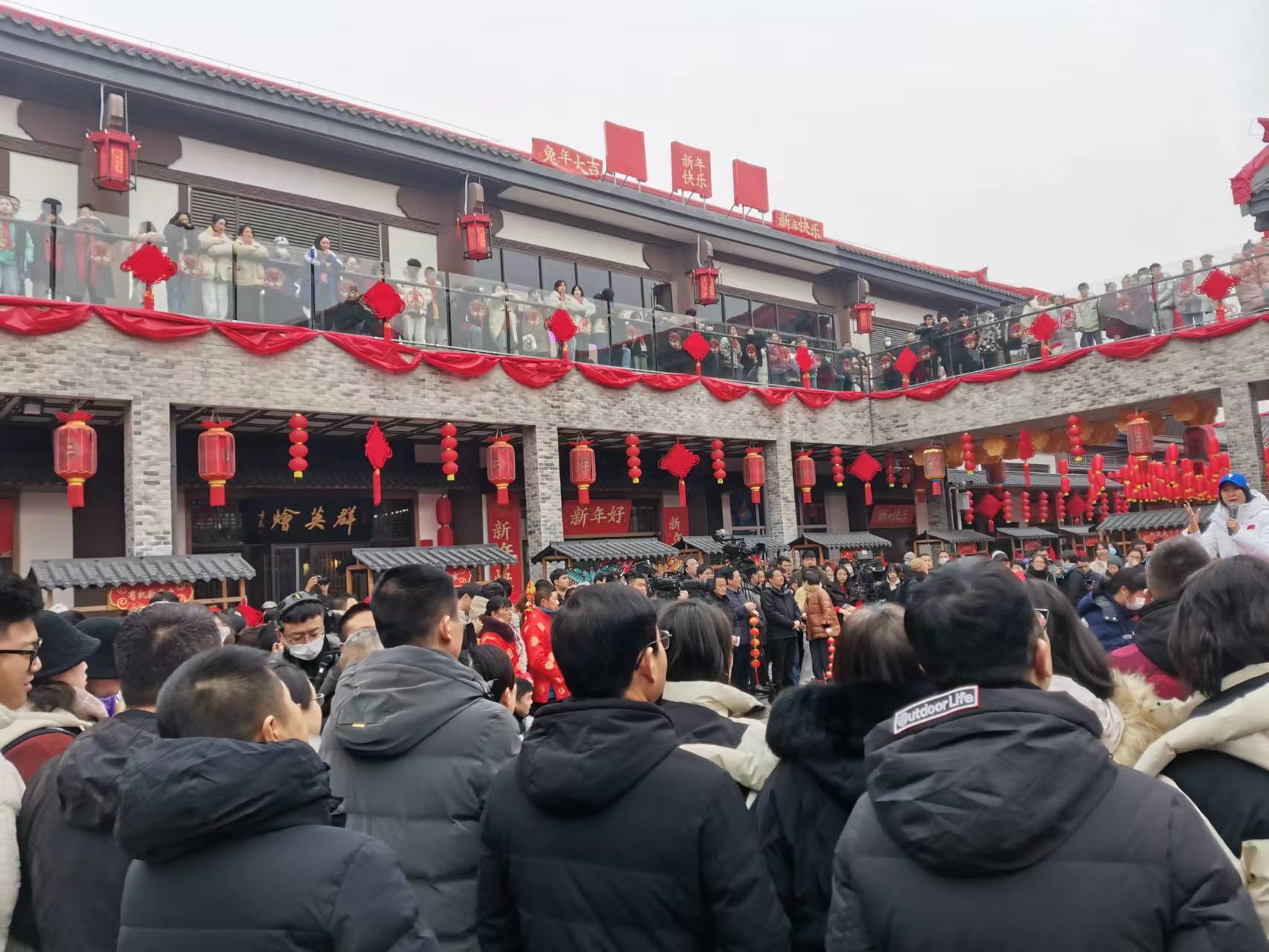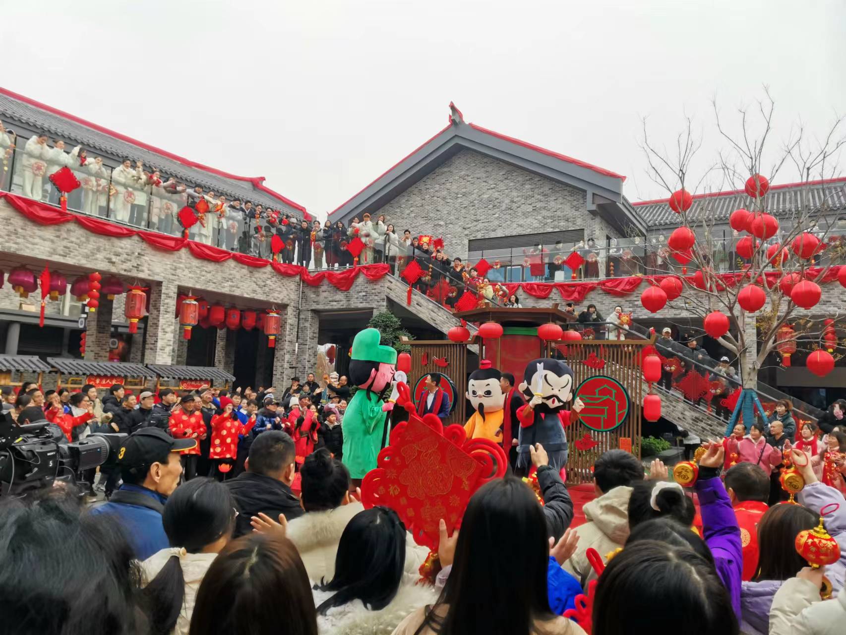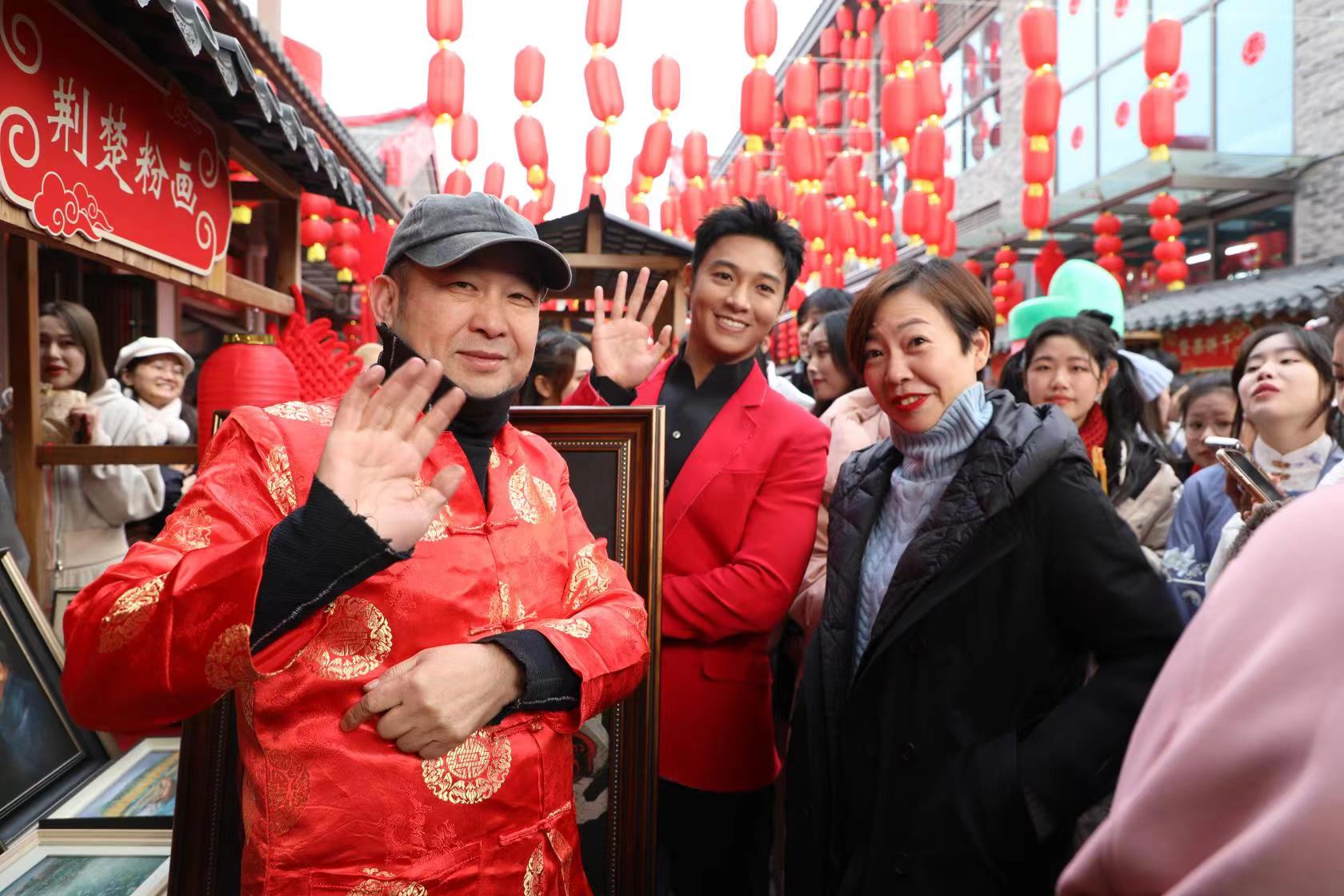 穿越三國時空,劉備、關羽、張飛三兄弟也來到荊街與游客共賀新春,平添無限年趣。張楠、張赫宣、張可盈傾情獻唱“好運飄啊飄”,更是將過年的氛圍推向高潮,現場掌聲、歡呼聲不斷。