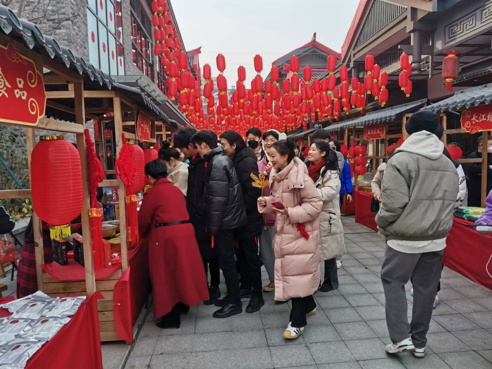 深冬的寒意襲人,仍然擋不住人們過年趕集的熱情。游客從四面八方涌向荊街,爭相購買品嘗荊沙魚糕、洪湖蓮藕等各類荊楚美食、特色小吃。